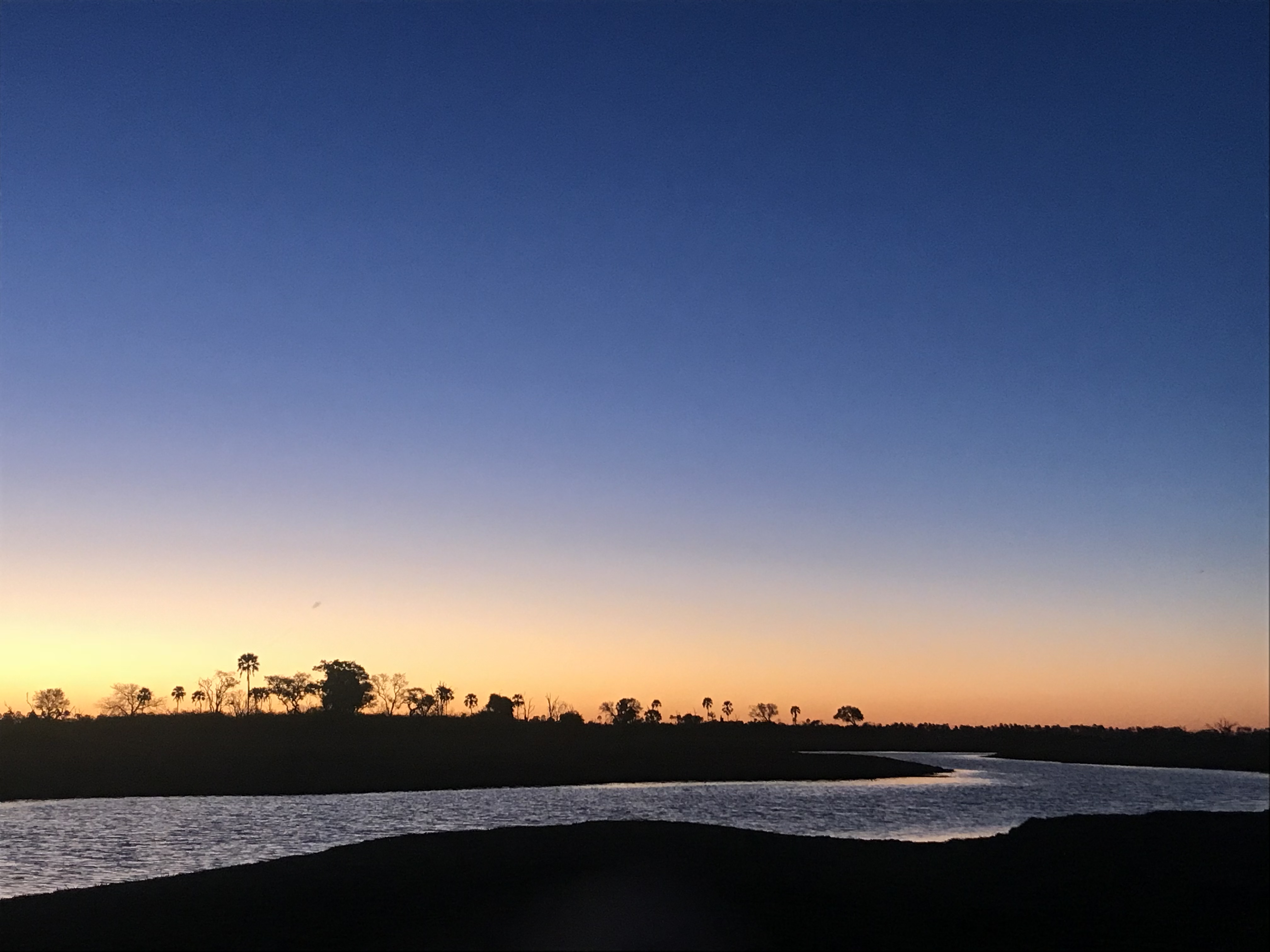 On our last afternoon our guide Four Four, and his tracker, Action, took us on a short Mokoro trip. We avoided crocs and hippos and stopped for a nice walk and sunset drinks and snacks and made it back to camp.