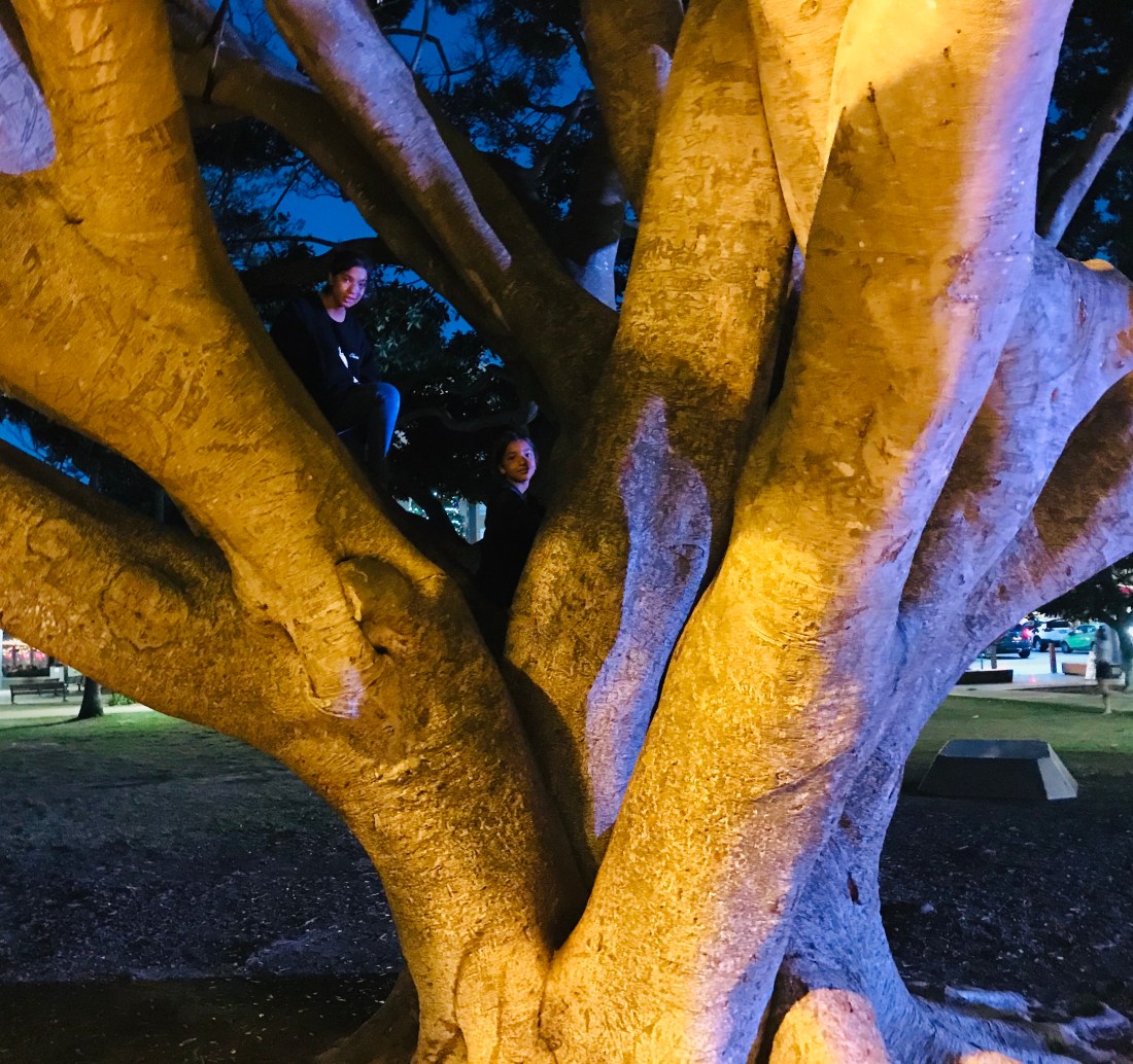 At Port Macquarie Vivian and Evan found a beautiful giant ficus tree to climb on the way to dinner. As they climbed higher, especially Vivian, I gently reminded them that coincidentally today, December 28th, is exactly one year since Vivian fell out of a tree in New Braunfels and broke her arm. Seems ages ago.