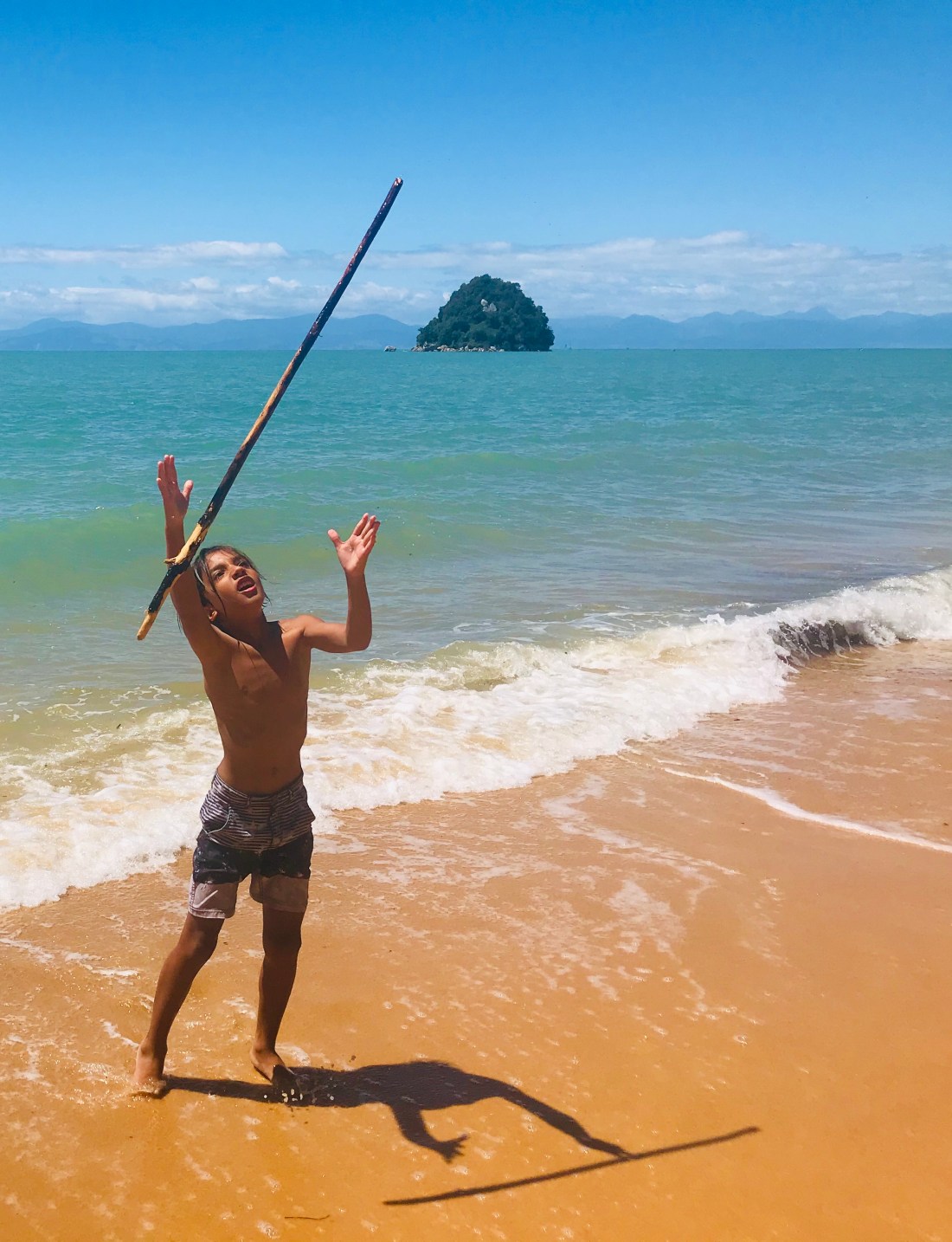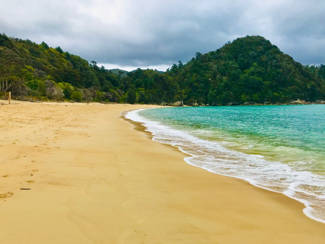 The bit of land protruding out between Golden Bay and Tasman Bay along the north coast of New Zealand’s South Island is a national park named after Abel Tasman. And this was my destination. Because it’s where a lush rain forest descend from green mountains to meet the aquamarine seas on golden beaches.