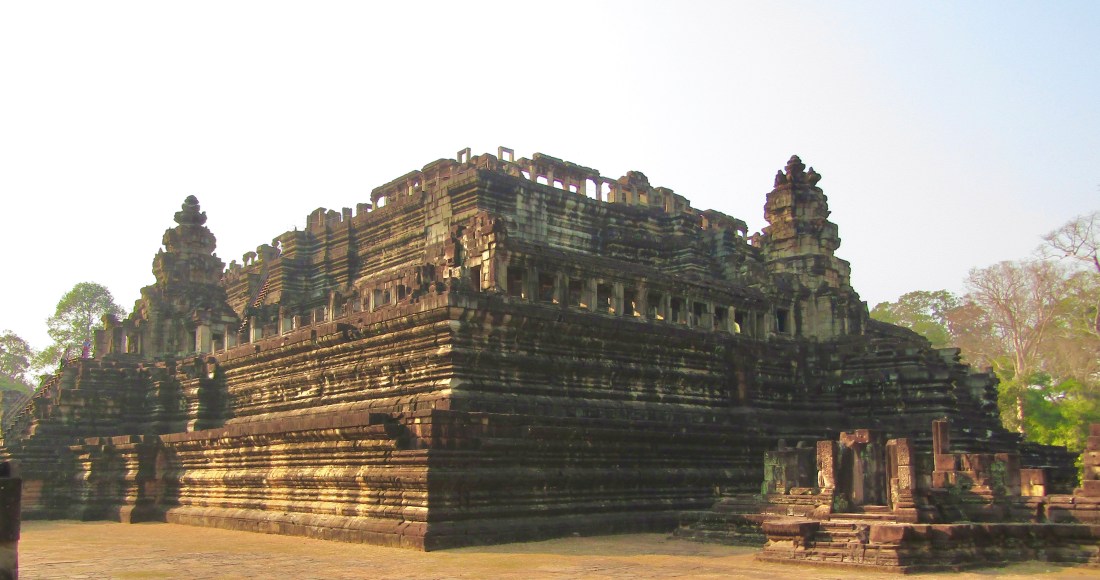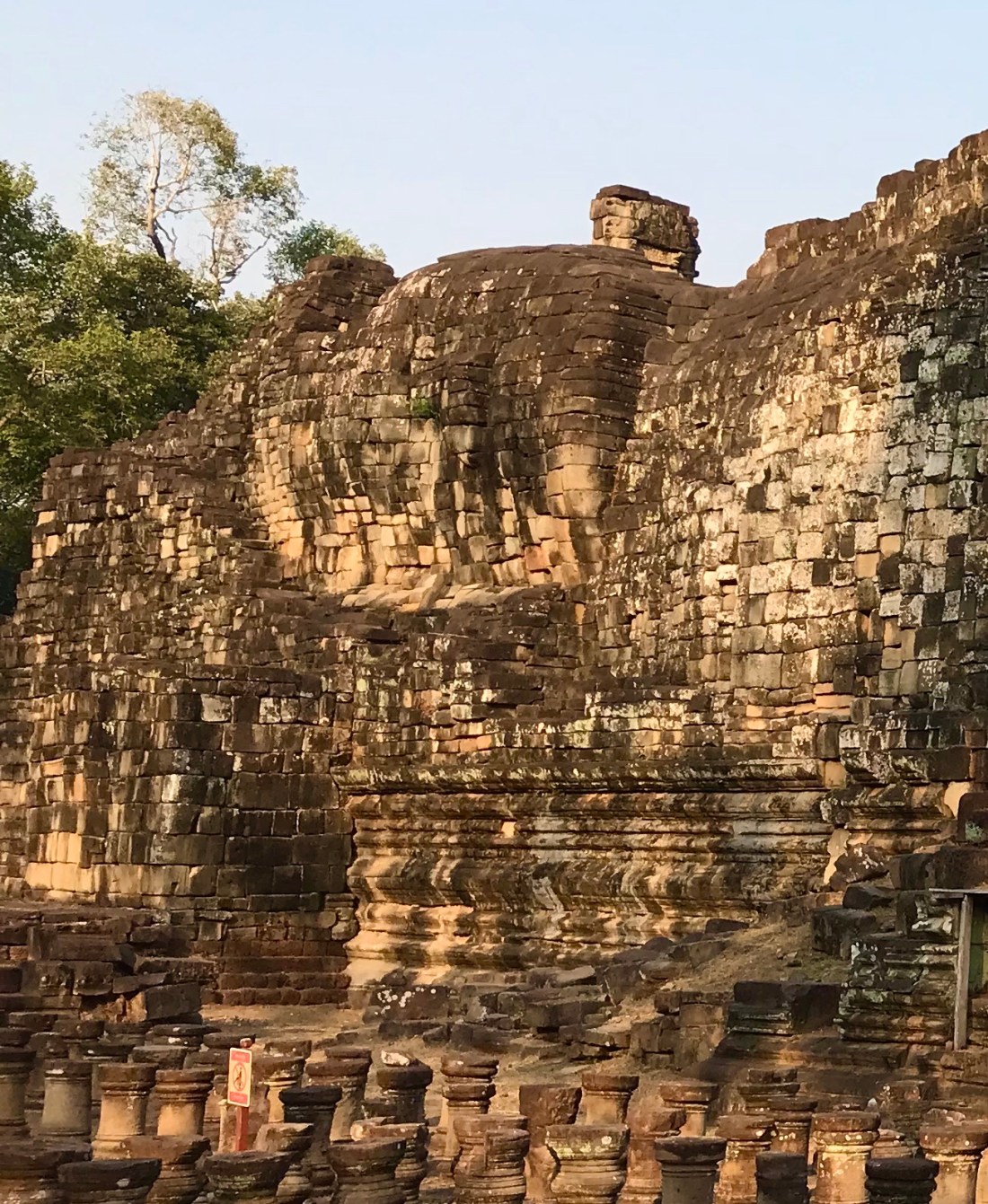 From Bayon we walked over to its older neighbor, the massive Hindu Shiva temple called Baphuon. Built to resemble the mountain home of Shiva, this man-made structure is almost as imposing as a mountain, with steep steps leading to what is the top now. An additional wood and bronze tower used to sit up here. The fashion show runway-like stone bridge leading up to the temple is the place to be photographed in Cambodia according to Jack and during our time here I saw multiple photographers and brides in spectacular wedding dresses hard at work.