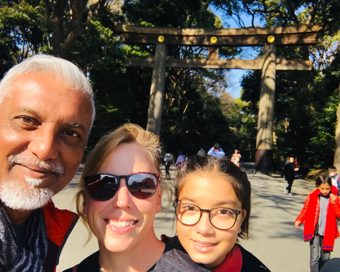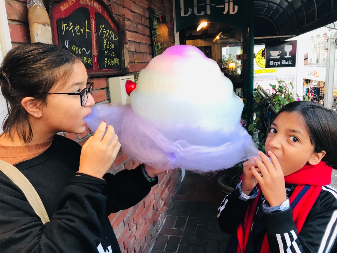 We marvel and big things and tiny details in Tokyo. The bathrooms everywhere are spotless and are equipped with lux Toto models that have heated seats and various washing options. The traffic, both automobile and human powered, at building exits and around construction sites, is deftly directed by men in white gloves and glowing batons who bow and wave gracefully. Mothers (usually, though there were a few fathers) take toddlers to school in the morning on their bicycles with double child seats and rain covers, pedaling their way through narrow streets and park roads. Children younger than Evan board the subways on their own, in smart navy uniforms and hats and backpacks, to and back from schools. We pass through Shinjuku station where tens of thousands of people transfer smoothly with no jostling, forming neat lines to get on to escalators or into spotless trains. We stroll through Harajuku filled with young people dressed in the most interesting ways and Vivian and Evan buy giant cotton candy. We get take away lunch at the gourmet food shops below the Takashimaya mall that make Whole Foods look like a country outpost, but realize that there is no place to sit and eat because the Japanese don’t eat in public. We wander through the serene grounds of the Meiji Shrine and read about the history of Japan opening up to the rest of the world after 250 years of self imposed isolation (though their version stresses on the actions of the Meiji emperor while the American version pivots on the arrival of Commander Perry and the militaristic might of the US navy). We walk past displays of KitKats in dozens of flavors and colors, ready for Valentine’s Day. We sample onegiri (salmon and rice wrapped in dry seaweed) from various corner stores in our quest to find the very best. We eat at izakayas, tiny restaurants where a single chef prepares everything and you have to select the cup for your hot sake. Vivian and Evan get pretty good at navigating the seeming labyrinth of the Tokyo rapid transit system (over 800 stations serviced by a dozen different operators providing 40 million passenger rides a day) that turns out to be amazingly user friendly and the best way to get around. They can find our home station of Yoyogi-Uehara on the maps and learn to look for it and other connecting stations when it is time to hop off the trains. We visit the old Senso-ji shrine and walk past the rows of wooden stalls selling everything from Hello Kittys to dorayakis, red bean paste filled pancakes, and Evan buys his fortune by randomly pulling a numbered bamboo stick from a box and then opening one of a hundred small drawers filled with notes about your future. We spend a day with our friend Prartho, hiking to the top of mount Takao, an hour west of Tokyo, and follow it up with a lovely long dinner at a Korean barbecue restaurant near the Shimo-Katazawa station. We visit the famed electronics and video gaming hub of Akihabara and Vivian and Evan buy souvenirs for their friends in Austin from the gacha machines that swallow three hundred yen and spit out a plastic egg containing a plastic toy. We are beckoned on the streets by “maids” from the maid cafes and by building sized posters of child-faced anime girls with big boobs, and are reminded everywhere of the uncomfortable intermix of the cultures of cutesy and smutty.