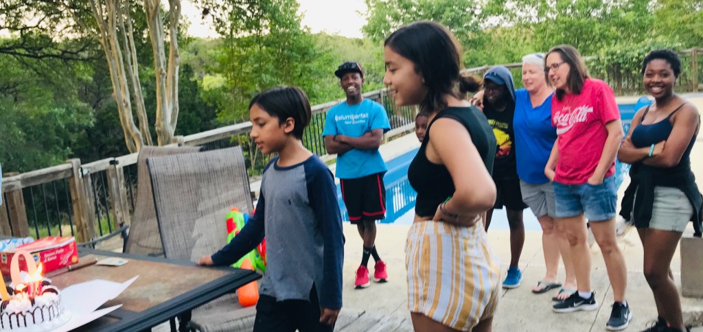 Vivian got to celebrate her 13th birthday in Japan. Evan was really looking forward to celebrating somewhere fun. But that was in the Before Times. On his big day a few of Evan’s friends called in on Zoom after school. Family sent him texts and emails and cards and Auntie Beth sent a gift. And later that evening, his Grandma and cousins and aunts visited and we sang happy birthday outside, standing sufficiently far from other familial units, and we ate ice cream cake.
