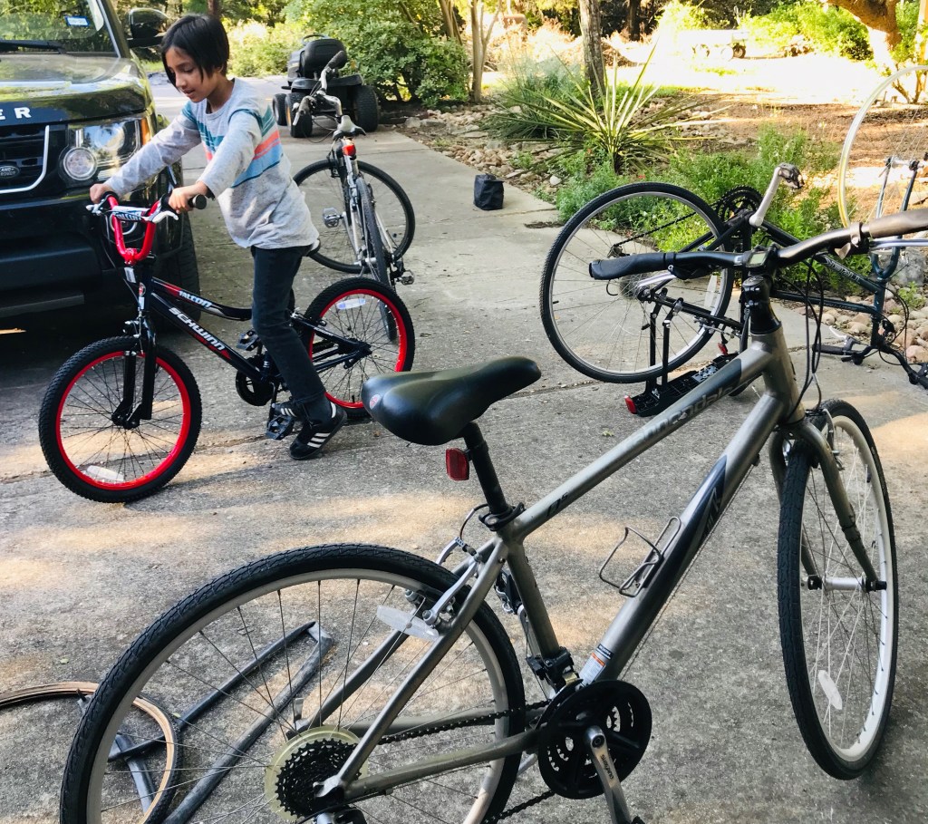 We keep ourselves amused by doing what we did for the past eight months – not much. Except that we are doing that in one place. The four of us hang out and annoy the fuck out of each other. The kids study a bit. Jo and I spend some time outside working. There are dead trees and weeds and malfunctioning garden machinery and run-away vines and swimming pool plumbing leaks and clogged gutters that will keep us fully occupied for months, especially at our skill levels. We go to grocery stores in the neighboring small towns for supplies and water and wine. We take Carol her groceries and chat with her from 2 m away. Carol sewed us masks to keep us legal in Texas. Jo keeps Jeff in the gravy by ordering a steady stream of matter from Amazon. We bought Evan a bike from the Target in town and fixed up three other bikes from the garage that hadn’t been operated in years. So we can go on family bike rides. But we’re on a hill with steep drop-offs in all directions so no one bikes too far because we are lazy. Like everybody else we bake. Jo borrowed her cousin Brian’s banana bread recipe and is killing it. Vivian has baked baguettes, macrons (which involved making meringue without an electric mixer), and blueberry biscuits. We’ve never eaten at home so much ever before. We are being forced to try new recipes along with the usual fare. We watched the first season of the Mandalorian and the Hunger Games trilogy+1 and the Maze Runner trilogy and Jo and Vivian are working their way through the cinematic remakes of the world of Jane Austen. We visit with Nicolle’s family from a distance when we drop off groceries for Carol. The other day we went to Sweet Berry Farms to pick strawberries at the same time that Tim and Karen and Ava and Z drove up from Austin and we sat away from each other on a glorious spring afternoon and ate picnic snacks and chatted. The children and Jo and I are engaging in the zoom / Facetime habit with friends near and far. This evening for instance, there’s some concern about the potential shortage of bandwidth because Vivian, Jo, and Evan have video calls all scheduled at approximately the same time. Thankfully, the kids aren’t drinking too heavily during their zoom get-togethers.