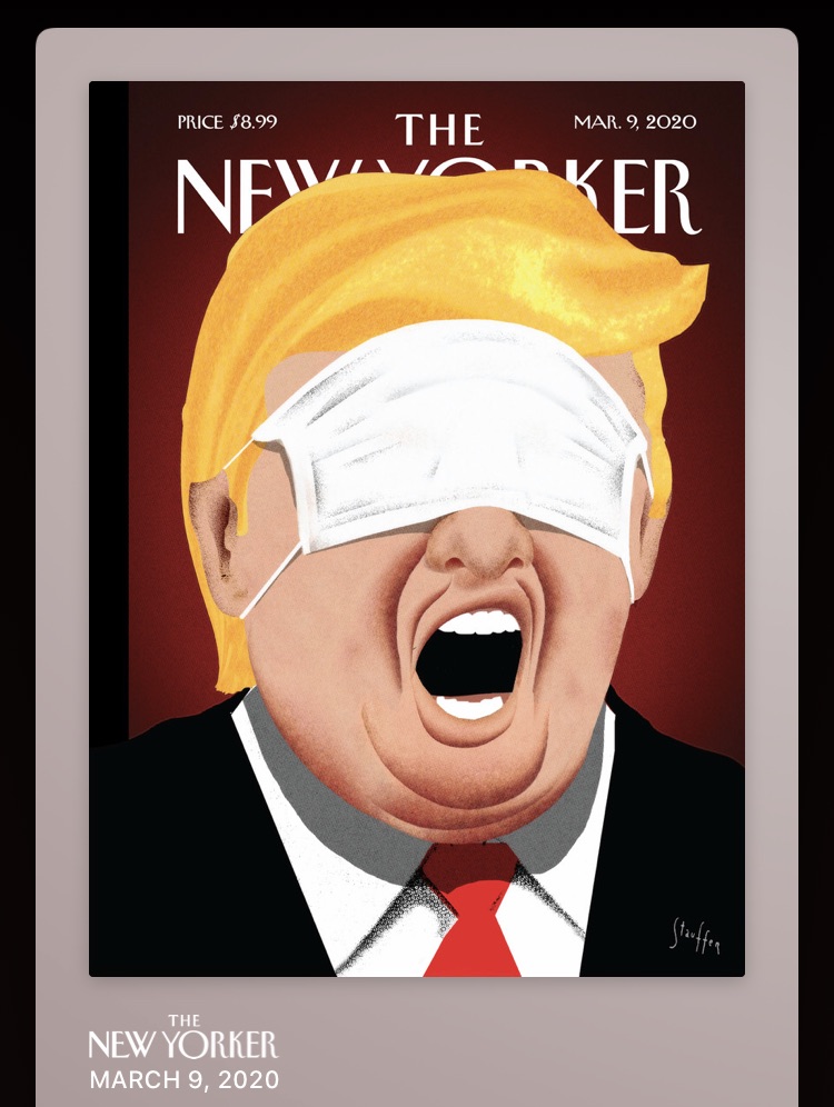 It has been said that there are three kinds of lies: lies, damned lies, and statistics. It has also been said that Trump lies like other people breathe. This habit unfortunately makes it difficult for him to be effective against Covid. The little strand of RNA doesn’t care about “alternate truths”. Years from now, Vivian and Evan, you will wonder why we faired so poorly against this bug. Why other countries did so much better. This New Yorker cover from March sums it up.