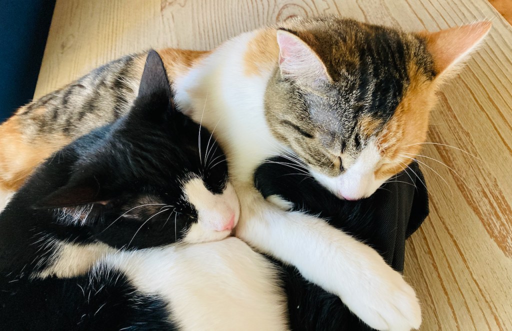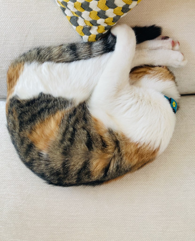 Sometimes the kids sneak into the frame when I am taking pictures of the animals. Like this one where Ouiser was giving Zeus’ undercarriage a good sniff while Evan is holding him up to show how tall she is (we call her “Long Kitty”). Or when Ouiser pretends she is a lap dog. The kittens are no longer tiny. They roam the outside at will and mostly come in for the night. They don’t usually stay still long enough for photos unless they are sleeping – which they do a lot of.