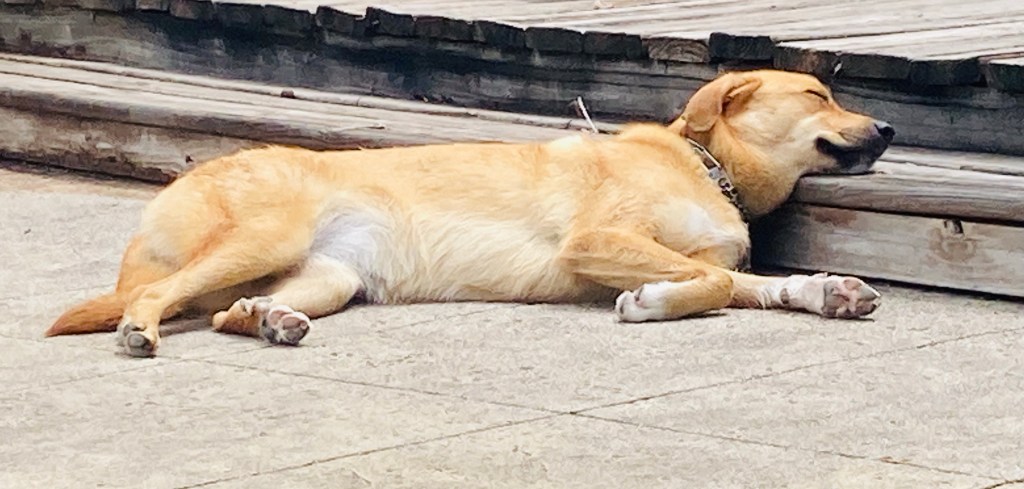 I should be worrying about flying with germs floating in the air. The flight from Austin to Chicago was one hundred percent full. The gates at Midway where we are waiting to board the flight to Providence are packed tighter than sardine cans while most of the rest of the airport is relatively empty. Almost everyone is in masks though you occasionally see more than one nose poking above and beyond. But instead I’m worrying about Ouiser. Did she get enough playtime today? Who gave her a belly rub? Hope they remember to scratch her chin in the morning. And most of all, what is going through her doggy brain. Either that she’s been deserted or we’re about to walk in and get her.