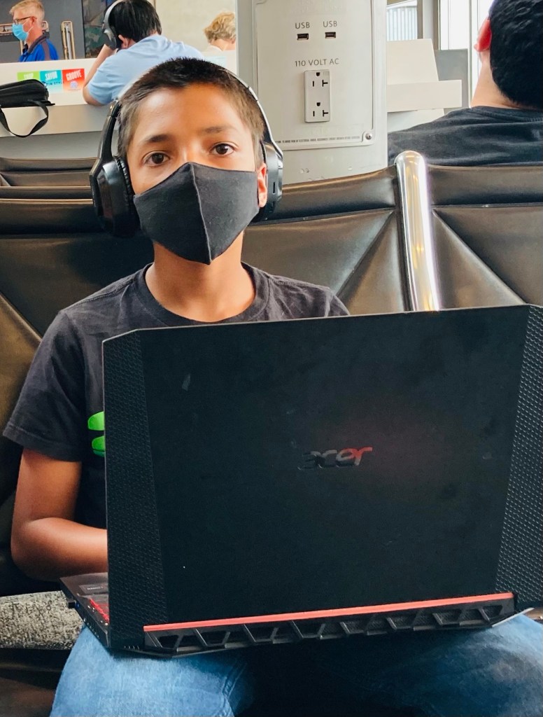 The kids fell back into travel mode but they have more devices this time around. Vivian is constantly on her phone, snapping or listening to music while Evan is carting his large gaming laptop around and playing Minecraft in airports.