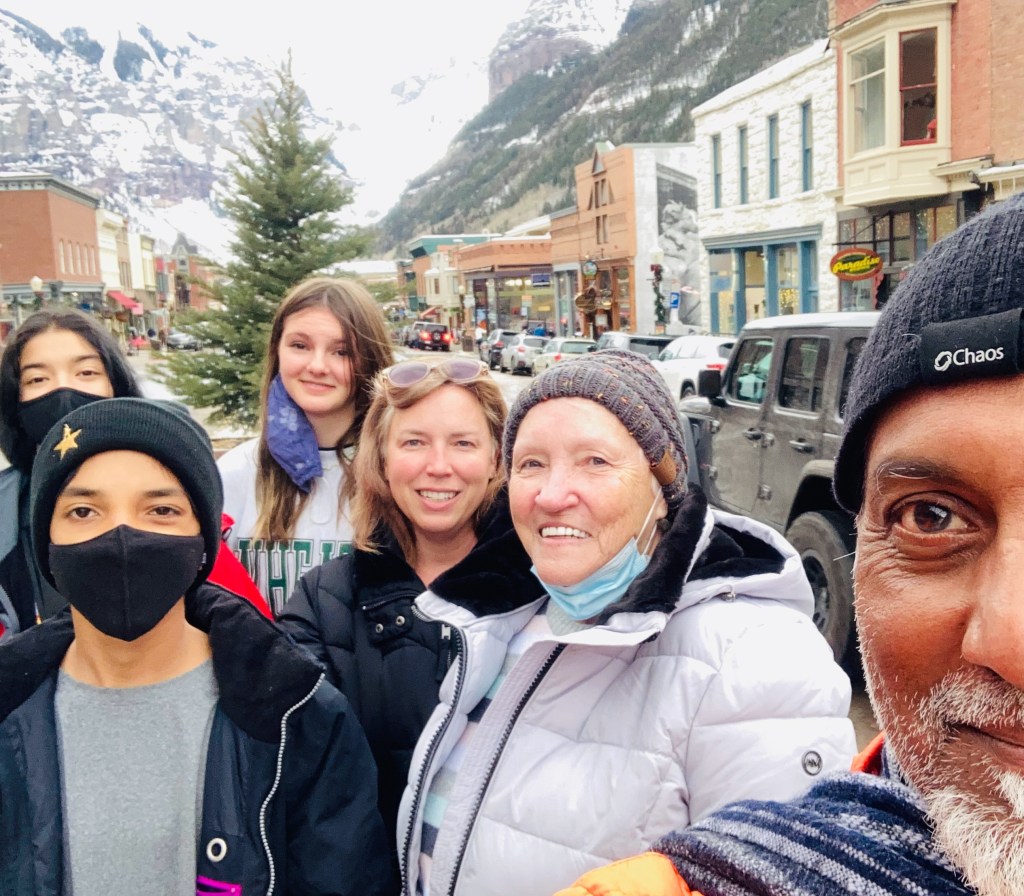 We had a huge snow storm and a week of way below-normal temperatures in Austin back in February. Ouiser, Evan, and Vivian loved playing in the snow. Ouiser thought it was great to frolic and jump about in the fresh powder. An estimated 700 Texans died. Power plants and the grid were not winterized and hundreds of thousands of Texans were without power in freezing weather for days. Manju Shah, who we called Mummy and she really was everyone’s mother, died during the storm. A few months later, her beloved husband, Lalji Shah, died. In between their deaths, we celebrated the life of my dear friend Navaneet Bill Rose. Then Alu’s mother-in-law, Mrs. Beaton died. I only met her once but through Michelle we felt connected to her. Jo and I attended funerals in person and on zoom. We mourned in quarantine for our friends. 2021 saw a lot of deaths. More people died of Covid than during the previous year, especially in my two home countries – the US and India. The Delta variant hit India hard in summer. During this desperate time, my friends in India responded and helped thousands of people breathe and live to see another day, but many more died. Forest fires, floods, tornados, storms, and drought killed even more. We sleepwalked another 12 months closer to the global catastrophic climate disaster that we are leaving for our children to – look – is that the same squirrel?!!