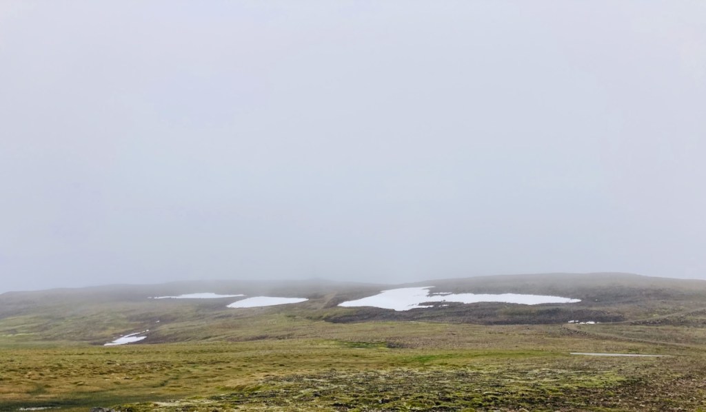 And on the seventh day they rested. While I drove. We had nothing planned except to get from point A to point B about 300 km away. Which was perfect for a rainy gloomy day. We spent the first half of the day on dirt roads in cloud covered heaths, crossing over the “thumb” of the Westfjords. Even for the emptiness of Westfjords this section was desolate. There were no villages or even sheep farms here. Just patches of snow and glacial lakes and ancient lava flows.