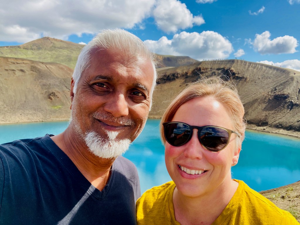 We travel well. Fourteen days driving around in Iceland, preceded by two weeks of Jo and the kids driving through Virginia and Maryland. This trip felt different. Vivian and Evan interacted with each other as almost adults. And Jo and I think they had a good time. As the plane rises up into the deep blue sky and the island falls away below us, Jo’s face says it all….