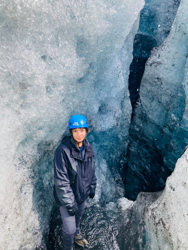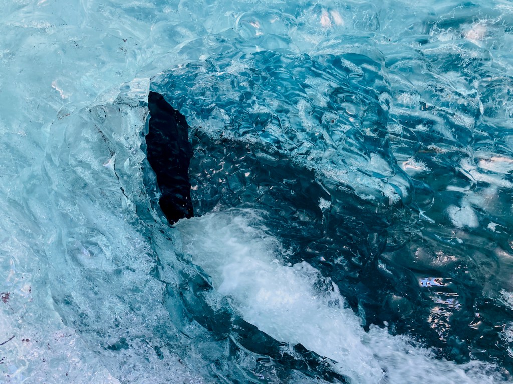 Jo had planned a glacier hike for us. We got into an enormous franken-jeep and drove along a very rocky path on the eastern flank of the retreating glacier up to where a new lake is being spawned. Then we walked another mile or two up to the ice, put on our harnesses, crampons, and brain buckets, and then took a nice guided walk up the lower part of Breiðamerkurjökull. We got to descend a part of the way into a crevasse and we explored an ice cave.