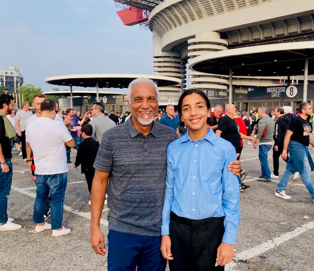 Jaime finds us a great lunch spot and we eat like locals for hours. Eventually we stop at our hotel for a quick checkin and then we are on our way to San Siro stadium, the home of AC Milan, to watch them play Juventus. The stadium is buzzing. We have fancy VIP tickets because they were the only tickets available online directly from the AC Milan website. The teams are warming up. The crowd is streaming in. Pretty soon every last seat is filled. We are a few rows from the field up from the corner mark. The press and TV crew is in the field below us. The home team fan section is behind the near goal, to our right. They are chanting and waving and doing their European soccer fan thing. The atmosphere is electrifying.
