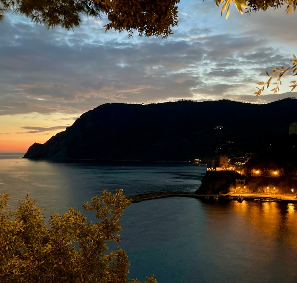 We got into Genova well after dark and left next morning – just long enough to give us a vague impression of a vibrant working city built on high hills and deep river valleys reaching down to a big port. The highways in and out of Genova are engineering marvels consisting almost entirely of tall bridges and tunnels. This is where the Morandi bridge collapsed in 2018 killing 43 people both on and below the bridge. A new sleek (and hopefully stronger) replacement bridge was designed by hometown architect Renzo Piano and was operational in record time. We left Genova under a light drizzle on E80, the Trans European highway that connects the Atlantic coast of Portugal with the Turkish-Iranian border. Jaime was driving and that gave me a lot of time to look around. The kids rested in the back. The city gave way to green tree covered mountains and small colorful villages shrouded in low clouds.