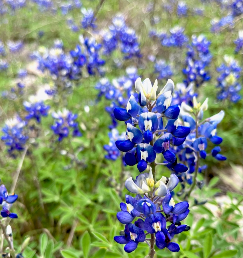 After a promising start, the bluebonnet season was a disappointment. The blooms started earlier than expected, and then a hot dry spell ended things well before Easter. But I did get a picture of one of the kids in a bluebonnet patch : – ). Since then it has rained regularly (though not enough) and the late spring blooms like the Mexican hats, cedar sages, and Indian blankets are doing very well. They look particularly good around Ouiser in what I call the Upper Turkey Creek trail. The honey suckles were in crazy full bloom for a couple of weeks and the trails smelled like citrus honey. OK – I reluctantly end my spring bloom report right here.