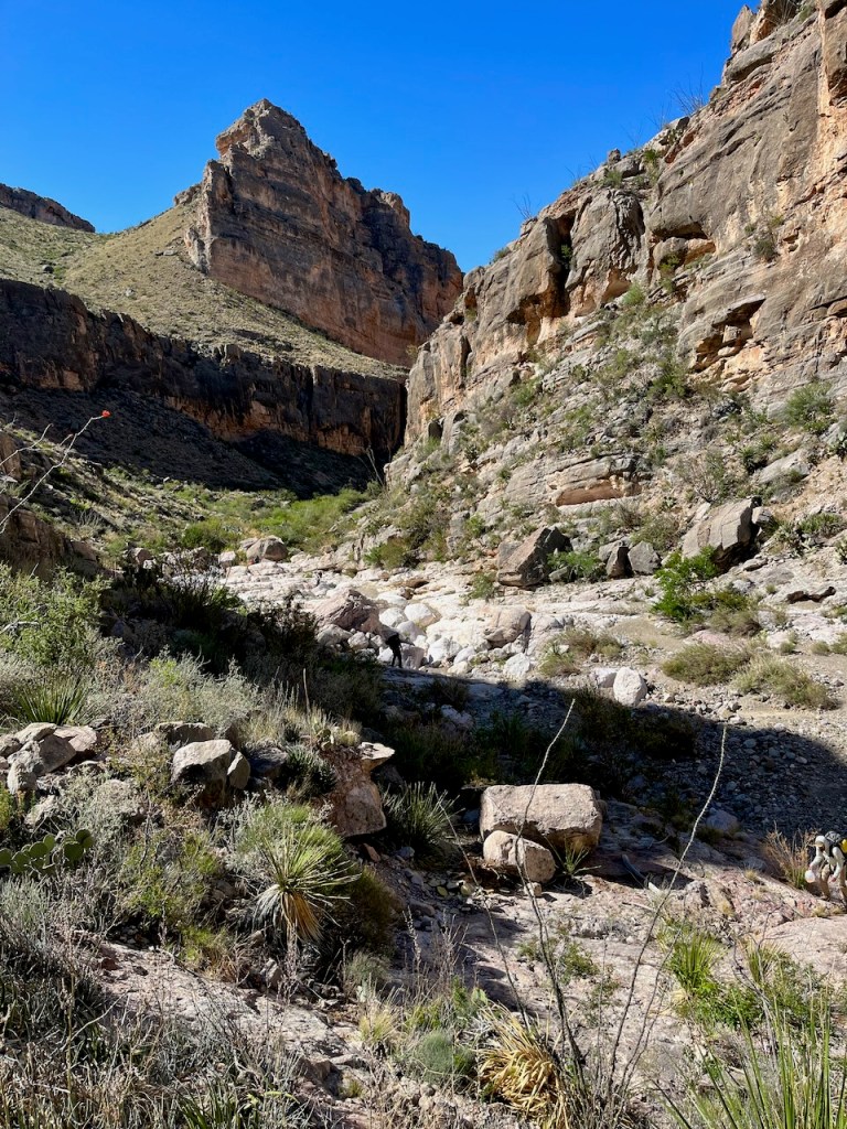 Jo travelled to Barcelona on a solo trip for her birthday. She sent back daily texts and photos of Picasso paintings and Gaudi buildings on the family group chat till Vivian begged her to stop. Vivian wishes that she had taken her pre-spring break trip to Barcelona instead of Maui. Jo had a good time and found a nice apartment on airbnb and I am hoping that sometime in the near future doing a shoulder season she can take me back there. I went to the Big Bend Ranch State park for Easter. It is less than half the size of its national park neighbor and in all my years of going to the national park I had never set foot in the state park. We started our hike from near the town of Lajitas at the Mexico border and stopped for lunch at the ruins of the old the Beuna Suerte mines. Then bushwhacked to the Lower Shutup slot canyon where we spent the first night. Next morning we headed through the slot canyon towards the Solitario – the remnants of an old caldera. But our path was blocked by smooth canyon walls and a big pool of water in a tenaja. Half our party turned back. The rest of us backtracked and climbed out of the slot canyon and found our way back into the Solatario. We spent that night at the Tres Papalotes campground where a friend who had driven out in a 4×4 met us. The last day we walked past the Solatario Bar into the Lefthand Shutup and then hiked out of the park’s eastern edge. We humped another few miles of desolate dirt roads with an inexhaustible supply of ups and downs over hills and across dry creek crossings. Just when we were getting a little tired we found the entrance to a friend of a friend’s hunting lot and as we walked up to the shack on the property we were met by a truck full of friends, cold beer and steaks ready to be grilled. Brendan was fantastic with the topo map and the gps and we never felt totally lost though we spent a lot of time staring at the map. I’ve marked some of our 35 mile jaunt through the park in the map below in case I do this trip again someday.