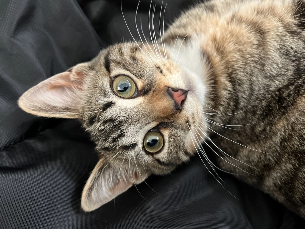On the afternoon of the third day of the new year after a couple of glitches with the fine people at the Austin Animal Center, this is what the back seat of Jo’s car looked like. There is a white cardboard box with breathing holes. It contains a kitten. The kitten has been officially named Phineas, after the champion of the 104 days of summer, a few minutes ago. But Evan wonders about cats in boxes. Is it both alive and dead? So he names the kitten Schrödinger. Please welcome Phineas Schrödinger to the family.