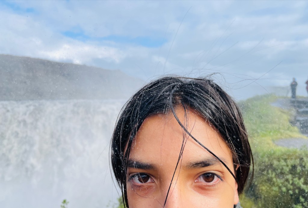 And here’s a photo of the top of Evan’s face at Dettifoss that I exported from Vivian’s camera. Worth saving : – )